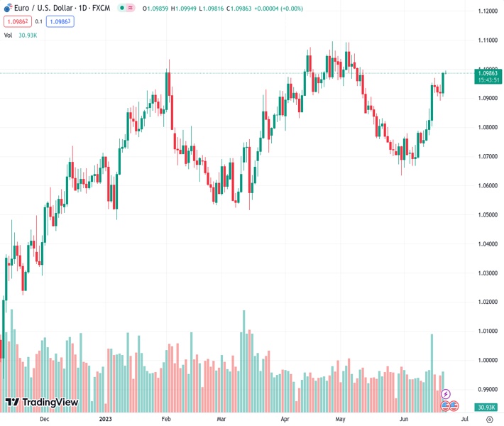 EURUSD currently trading at 1.0987 at the time of writing. Pair opened at 1.0986 and is trading with a change of 0.01 % .