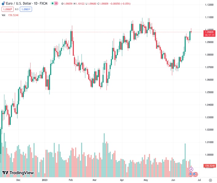EURUSD currently trading at 1.097 at the time of writing. Pair opened at 1.0986 and is trading with a change of -0.15 % .