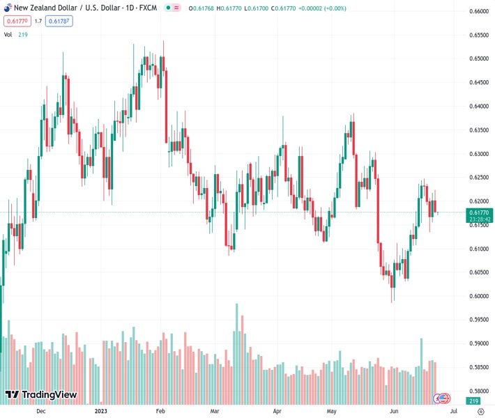 NZDUSD currently trading at 0.6178 at the time of writing. Pair opened at 0.6202 and is trading with a change of -0.39 % .