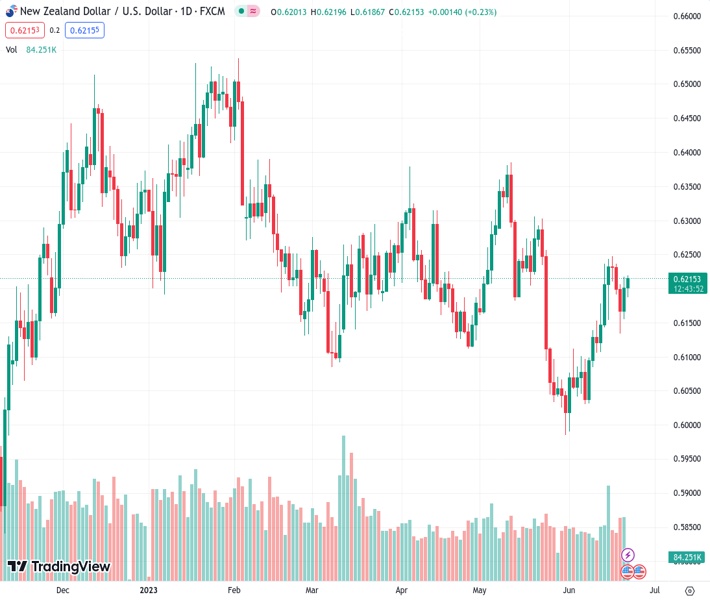 UOB states that currently, the NZDUSD at 0.62156 is experiencing trade within a confined range.