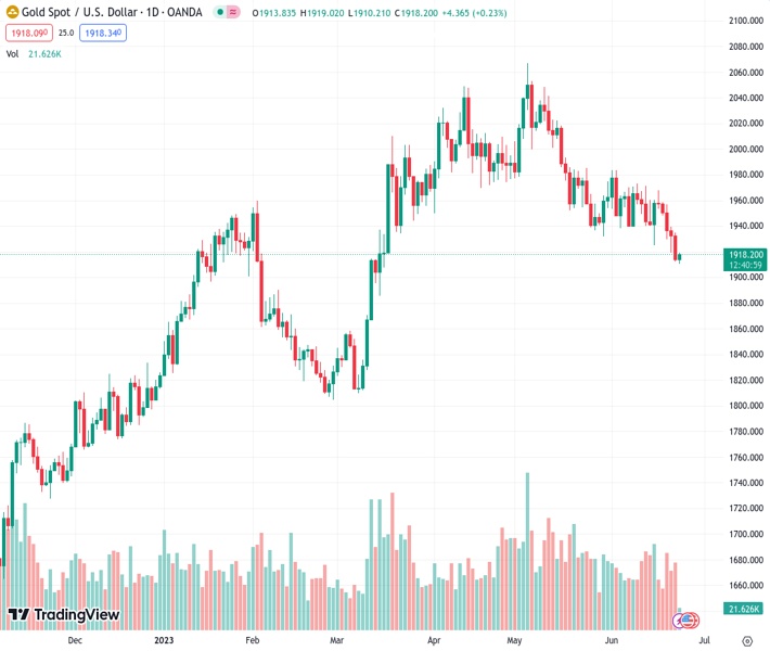 OCBC predicts that gold prices could have a strong performance towards the end of the Fed’s tightening cycle. The current price for XAUUSD is at 1,917.73.
