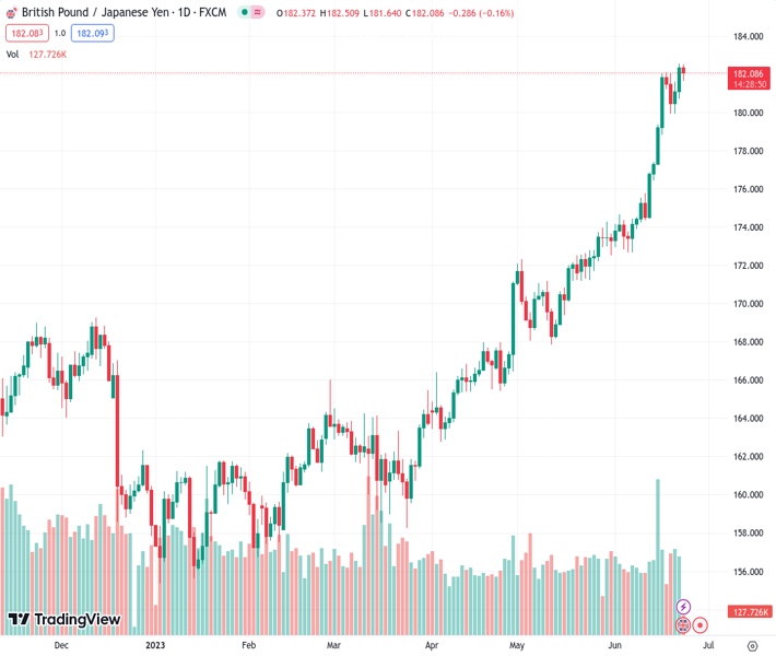 GBPJPY currently trading at 182.06 at the time of writing. Pair opened at 182.44 and is trading with a change of -0.21% % .
