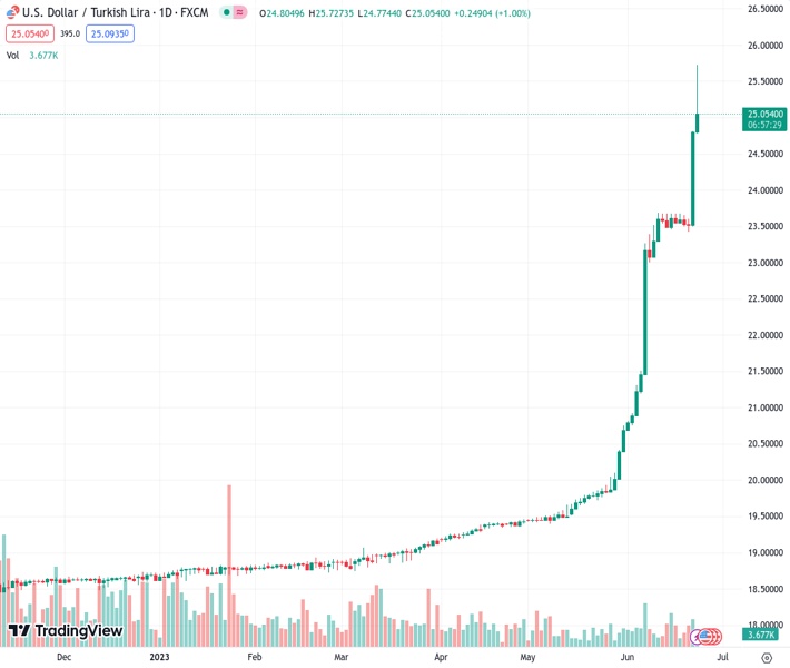 So far in June, the lira (TRY) has already depreciated more than 20%… and the month is not over yet…