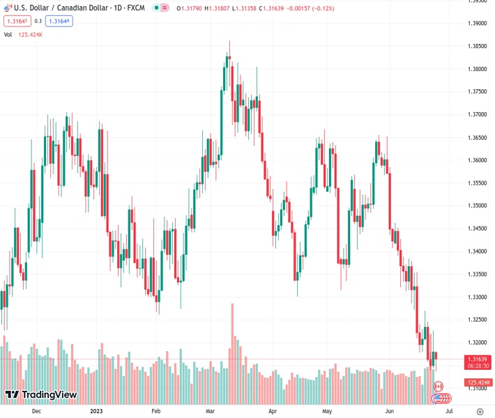 According to SocGen, the USDCAD, currently trading at 1.31631, is expected to decline towards 1.20. However, the decline will not occur in a direct manner.