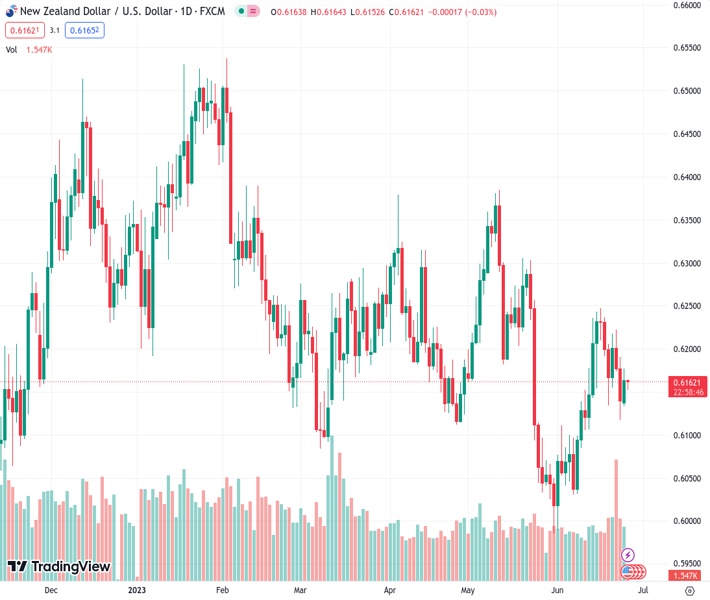 Bullish traders entered the market at the support line, causing an increase in the NZD/USD rate to 0.61608.