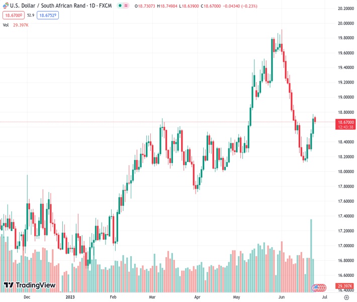 Societe Generale suggests that a further downside potential can only be confirmed if the USDZAR pair falls below the range of 18.10/18.00. The current trading value is set at 18.6669.