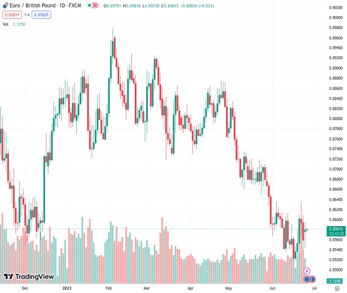 EURGBP currently trading at 0.858 at the time of writing. Pair opened at 0.8567 and is trading with a change of 0.15 % .