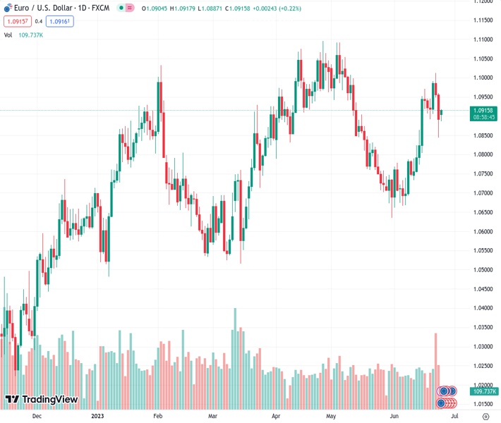 The Euro’s value will be negatively impacted if there is any alteration in the hawkish policy mindset of the ECB, according to Scotiabank. The current exchange rate for EURUSD is 1.09172.