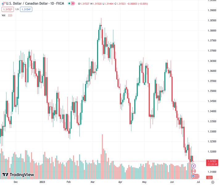 • The USD/CAD traded in the 1.3136 – 1.3184 range, setting a new low since September 2022.
