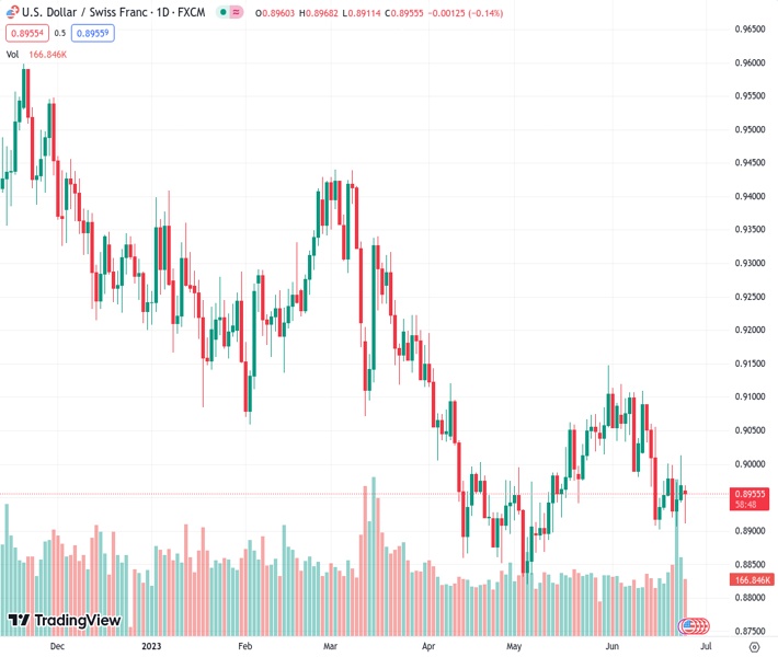 USDCHF currently trading at 0.8956 at the time of writing. Pair opened at 0.8974 and is trading with a change of -0.2 % .