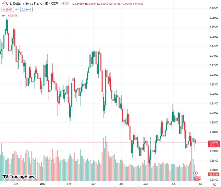 USDCHF currently trading at 0.8944 at the time of writing. Pair opened at 0.8957 and is trading with a change of -0.15 % .