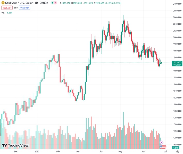 #XAUUSD @ 1925.00 Gold price remains confined in a narrow range just above the multi-month low set last week.