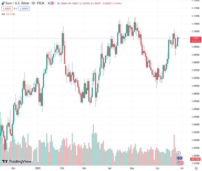 According to Credit Suisse, the EURUSD exchange rate is currently at 1.09556. There is a support level at 1.0887 which could help the pair maintain a small upward trend. However, there is resistance at 1.0991/98 which may limit further upside movement.