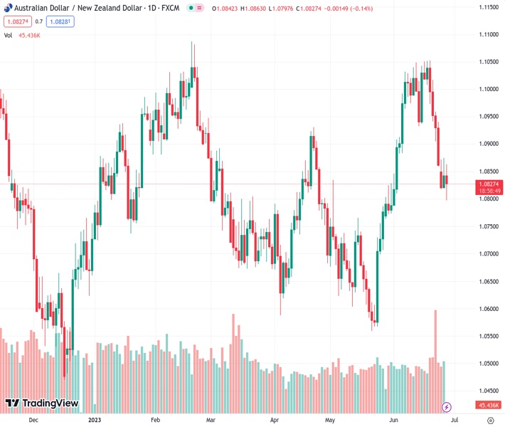 AUDNZD currently trading at 1.0817 at the time of writing. Pair opened at 1.085 and is trading with a change of -0.30% % .