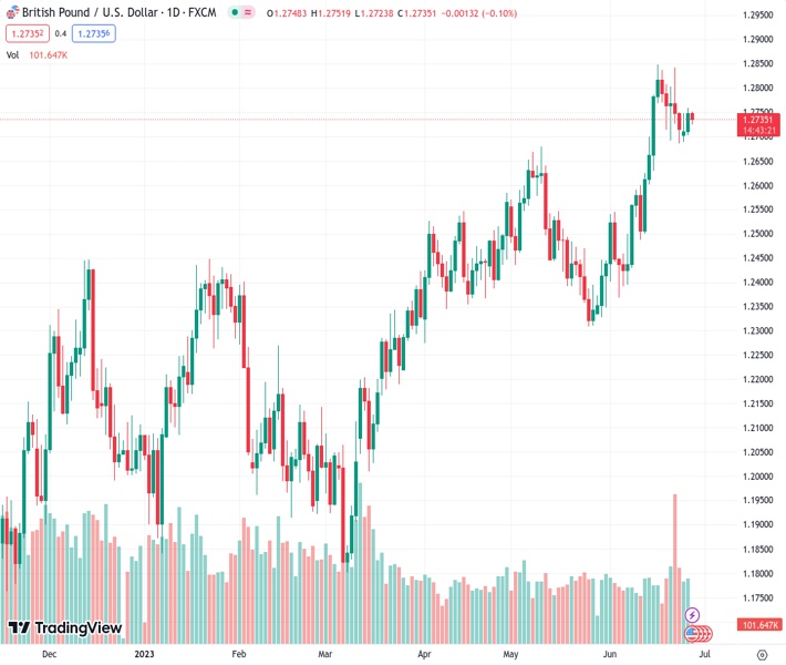GBPUSD currently trading at 1.273 at the time of writing. Pair opened at 1.2748 and is trading with a change of -0.14% % .