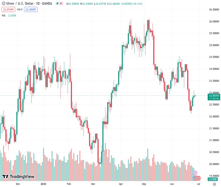 XAGUSD currently trading at 22.89 at the time of writing. Pair opened at 22.86 and is trading with a change of 0.13% % .