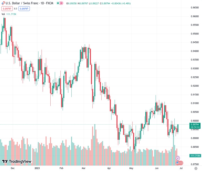 USDCHF currently trading at 0.8966 at the time of writing. Pair opened at 0.8936 and is trading with a change of 0.34 % .