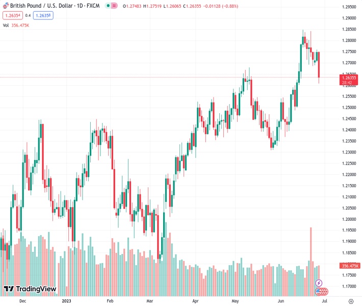 GBPUSD currently trading at 1.2641 at the time of writing. Pair opened at 1.2748 and is trading with a change of -0.84 % .