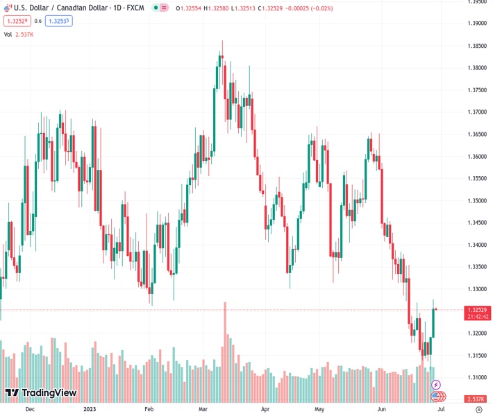 USDCAD currently trading at 1.3255 at the time of writing. Pair opened at 1.3192 and is trading with a change of 0.48% % .