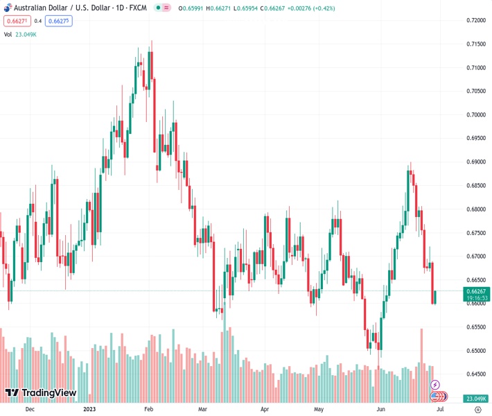 Australia’s retail sales increased by 0.7% month-on-month in May, surpassing the 0.6600 level, in the AUD/USD currency pair.
