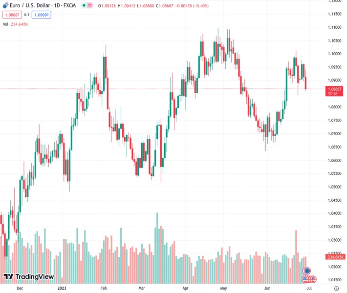 Bears are aiming for the 1.0850 level in the EUR/USD currency pair, currently trading at 1.08674.