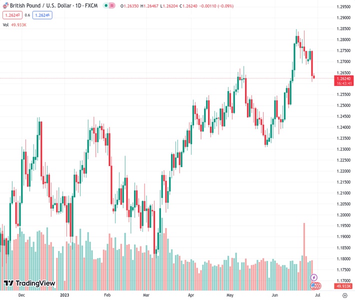 GBPUSD currently trading at 1.2626 at the time of writing. Pair opened at 1.2635 and is trading with a change of -0.07 % .