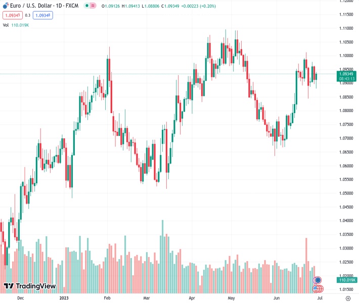 Scotiabank predicts that the EUR/USD currency pair, currently trading at 1.09381, will likely move towards a slight resistance level between 1.0955 and 1.0960.