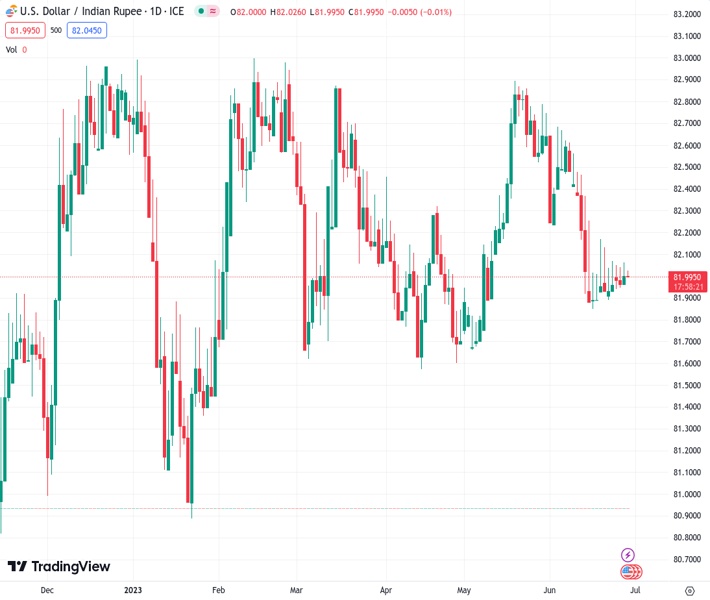 USDINR currently trading at 82.0515 at the time of writing. Pair opened at 82.0085 and is trading with a change of 0.05 % .