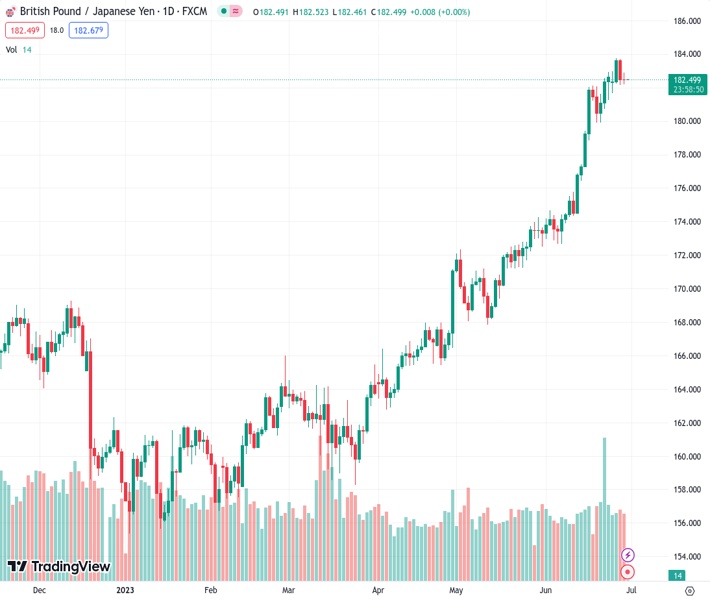 GBPJPY currently trading at 182.6 at the time of writing. Pair opened at 182.57 and is trading with a change of 0.02 % .