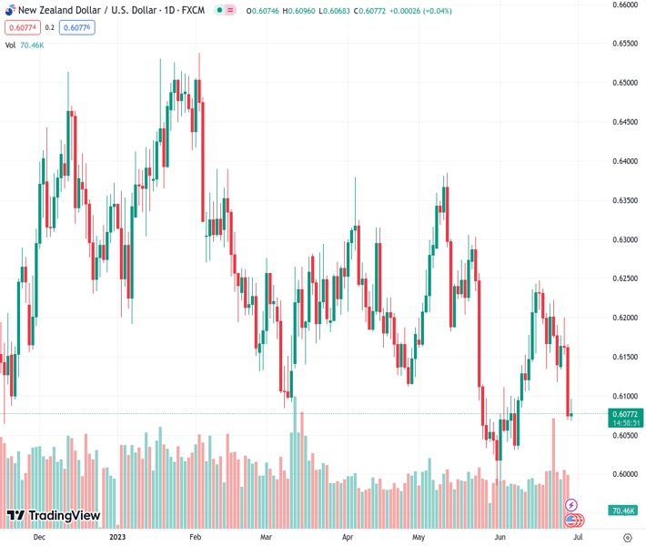 The NZDUSD pair is currently trading at 0.60784 and continues to be under pressure, reaching its lowest point in three weeks. According to the viewpoint of Nehcap, it is anticipated that there will be a further decline in the near future.
