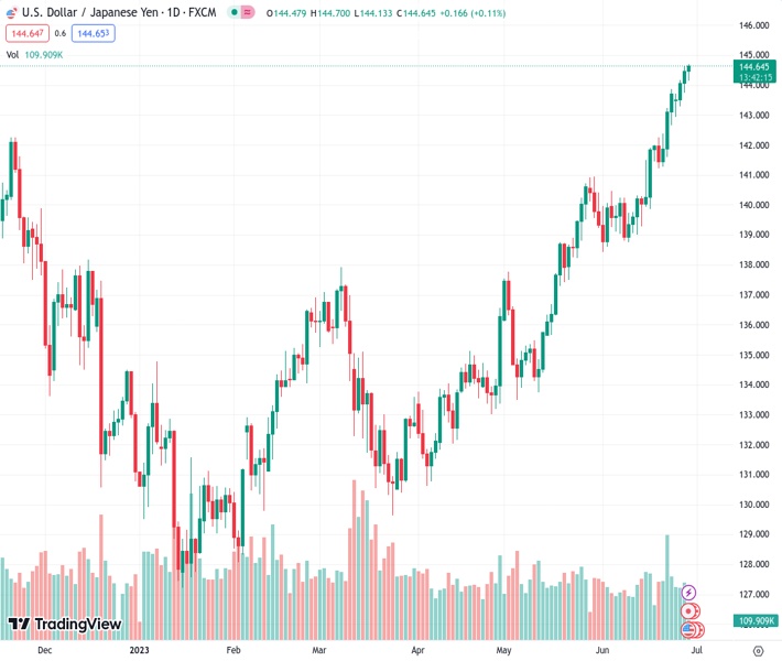 USDJPY currently trading at 144.61 at the time of writing. Pair opened at 144.49 and is trading with a change of 0.08% % .