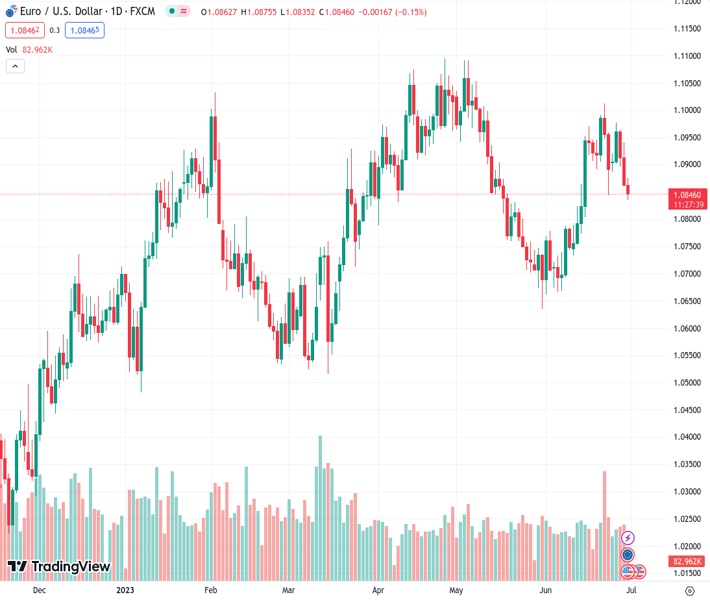 #EURUSD at 1.08431: If the crucial support level at 1.0585/1.0501 is breached, it will pave the way for a longer-lasting downward movement, according to Credit Suisse.