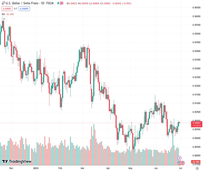 USDCHF currently trading at 0.8983 at the time of writing. Pair opened at 0.8994 and is trading with a change of -0.12% % .
