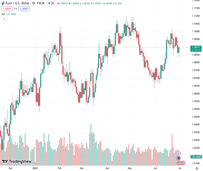 EURUSD currently trading at 1.0872 at the time of writing. Pair opened at 1.0868 and is trading with a change of 0.04 % .