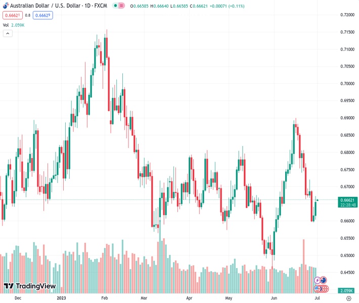 AUDUSD currently trading at 0.6663 at the time of writing. Pair opened at 0.6665 and is trading with a change of -0.03% % .