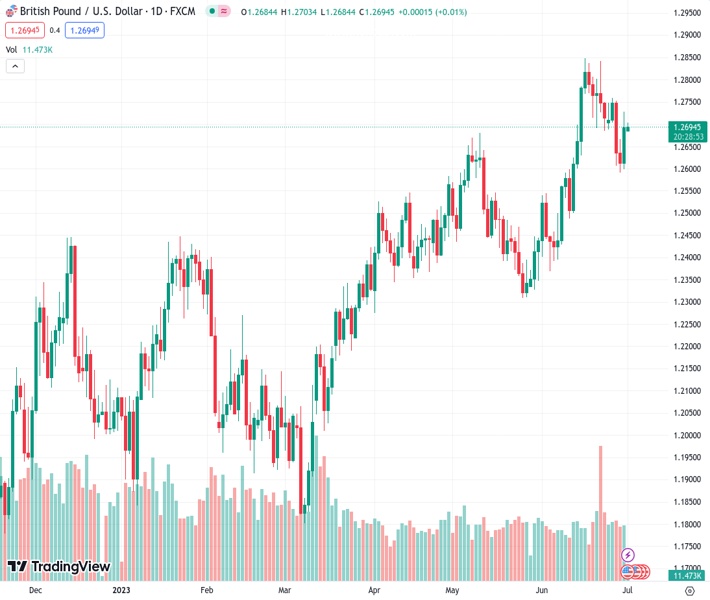 GBPUSD currently trading at 1.2696 at the time of writing. Pair opened at 1.27 and is trading with a change of -0.03 % .