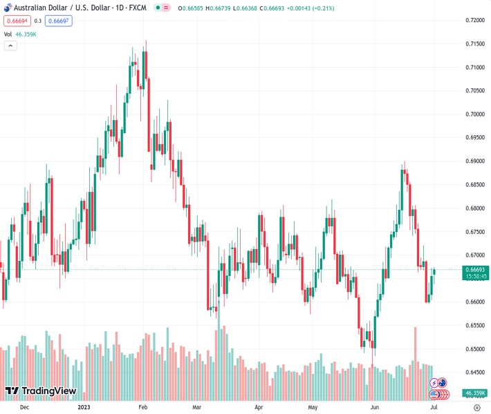 AUDUSD currently trading at 0.6667 at the time of writing. Pair opened at 0.6665 and is trading with a change of 0.03% % .