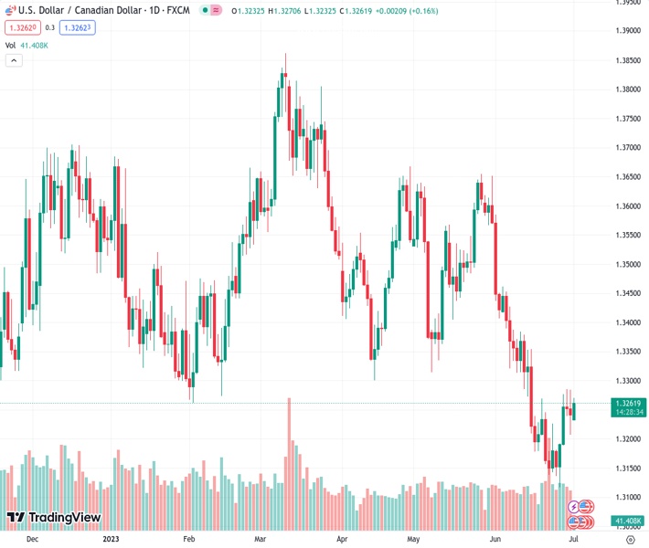 USDCAD currently trading at 1.3263 at the time of writing. Pair opened at 1.3248 and is trading with a change of 0.11% % .