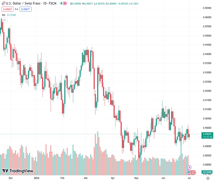 USDCHF currently trading at 0.8943 at the time of writing. Pair opened at 0.8955 and is trading with a change of -0.13 % .
