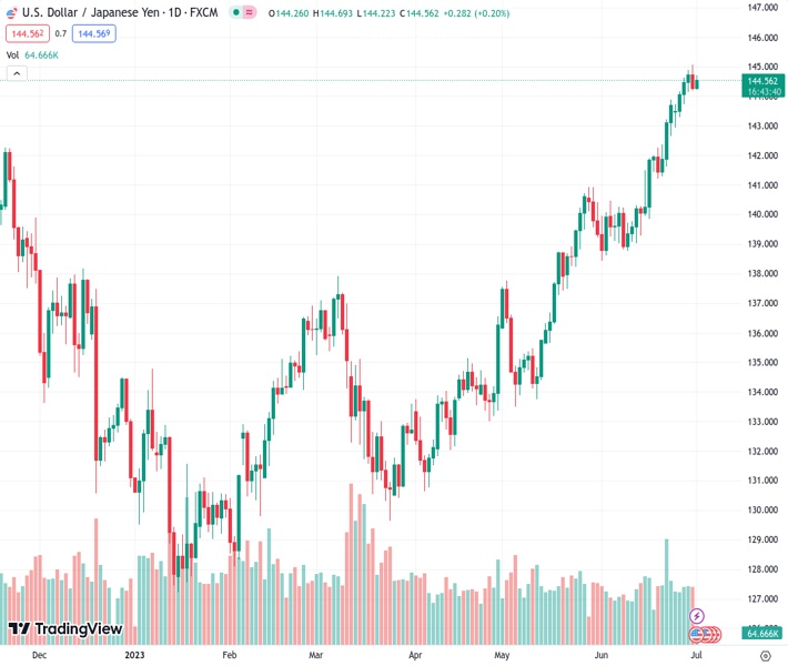 USDJPY currently trading at 144.62 at the time of writing. Pair opened at 144.31 and is trading with a change of 0.21% % .