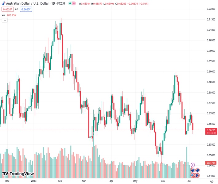 AUDUSD currently trading at 0.6618 at the time of writing. Pair opened at 0.6655 and is trading with a change of -0.56 % .