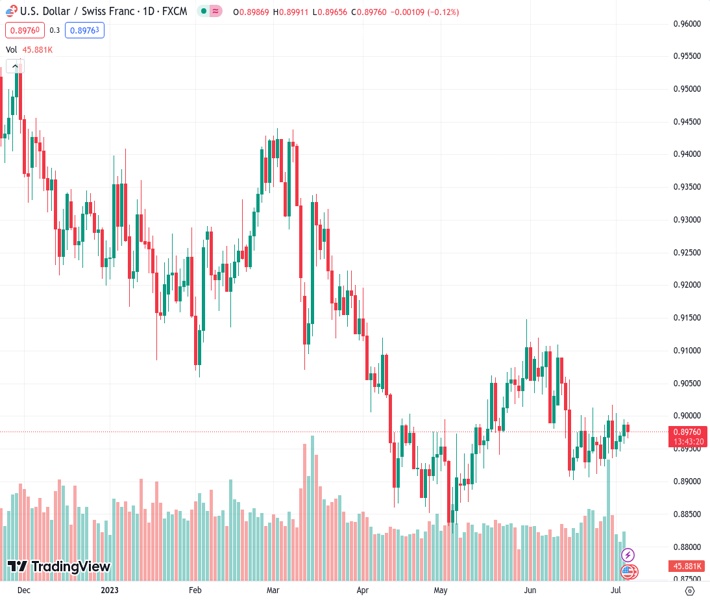 USDCHF currently trading at 0.8971 at the time of writing. Pair opened at 0.8987 and is trading with a change of -0.18 % .