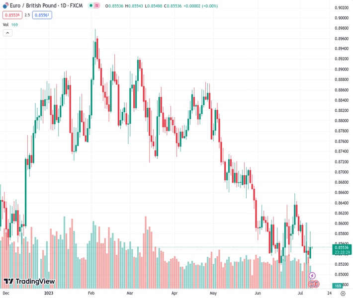 As the hawks assemble at the Bank of England, the bears make their presence felt in the EURGBP pair, currently standing at 0.85539.