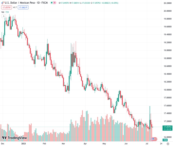 Despite flirting with a level of 17.05, buyers of Mexican Peso justify their options market bias.