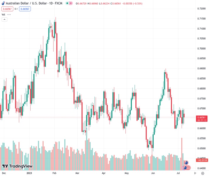 AUDUSD currently trading at 0.6634 at the time of writing. Pair opened at 0.6691 and is trading with a change of -0.85 % .