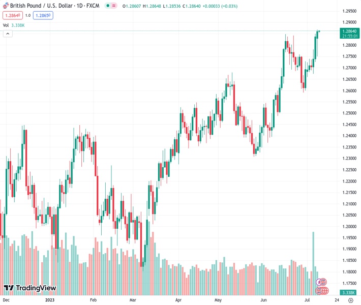 The GBPUSD pair is trading close to its highest level since April 2022, which was reached the day before. According to @nehcap’s perspective, a retreat is anticipated.
