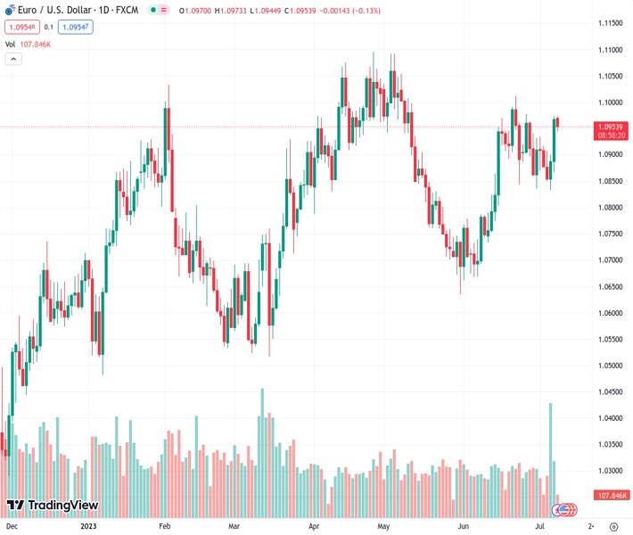 The suggested goal for EURUSD at 1.09548 is to first surpass 1.10, followed by additional gains to revisit the highest level observed this year, according to Scotiabank.