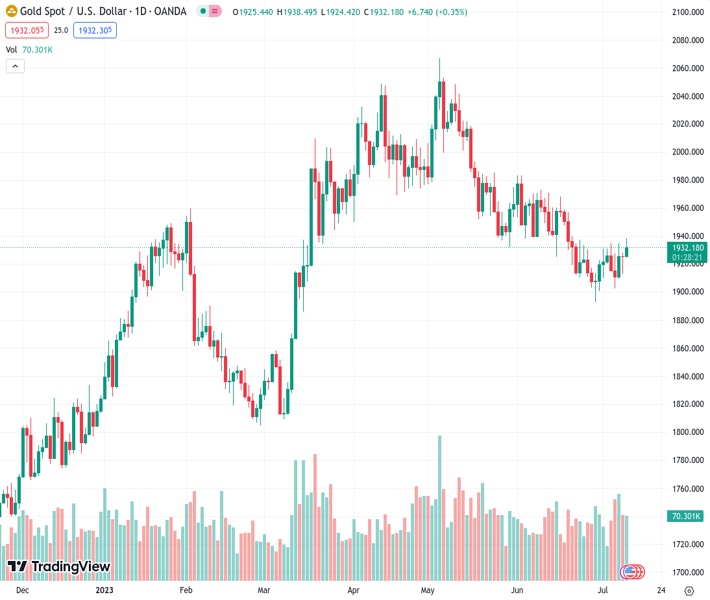 On Tuesday, the XAUUSD pair increased above the $1,930 mark, surpassing the 20-day Simple Moving Average situated at $1,926.