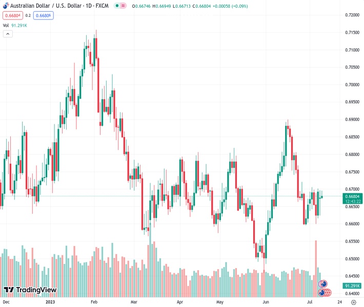 AUDUSD currently trading at 0.6673 at the time of writing. Pair opened at 0.6676 and is trading with a change of -0.04 % .