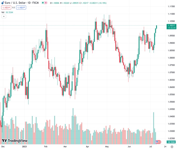 EURUSD currently trading at 1.102 at the time of writing. Pair opened at 1.1001 and is trading with a change of 0.17 % .